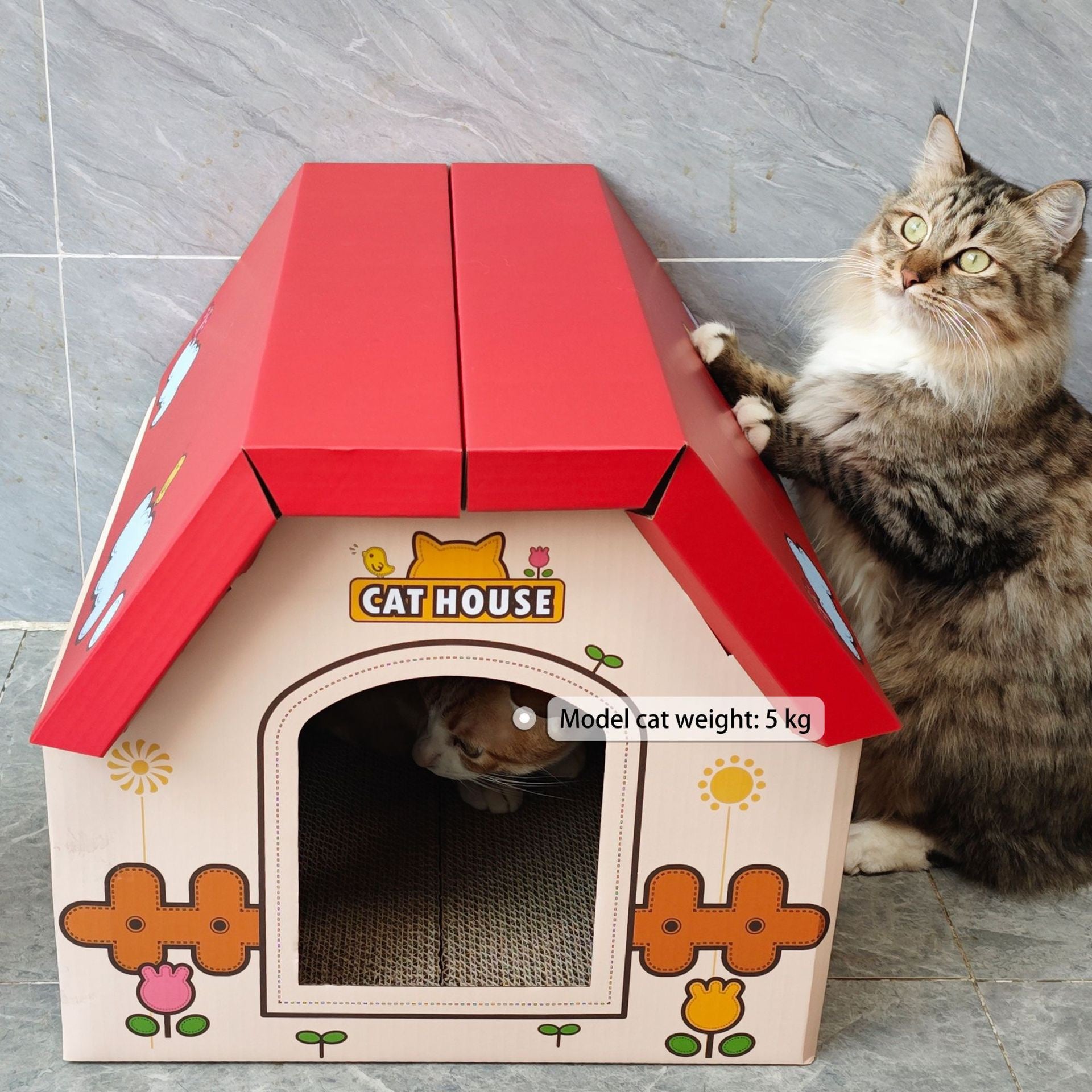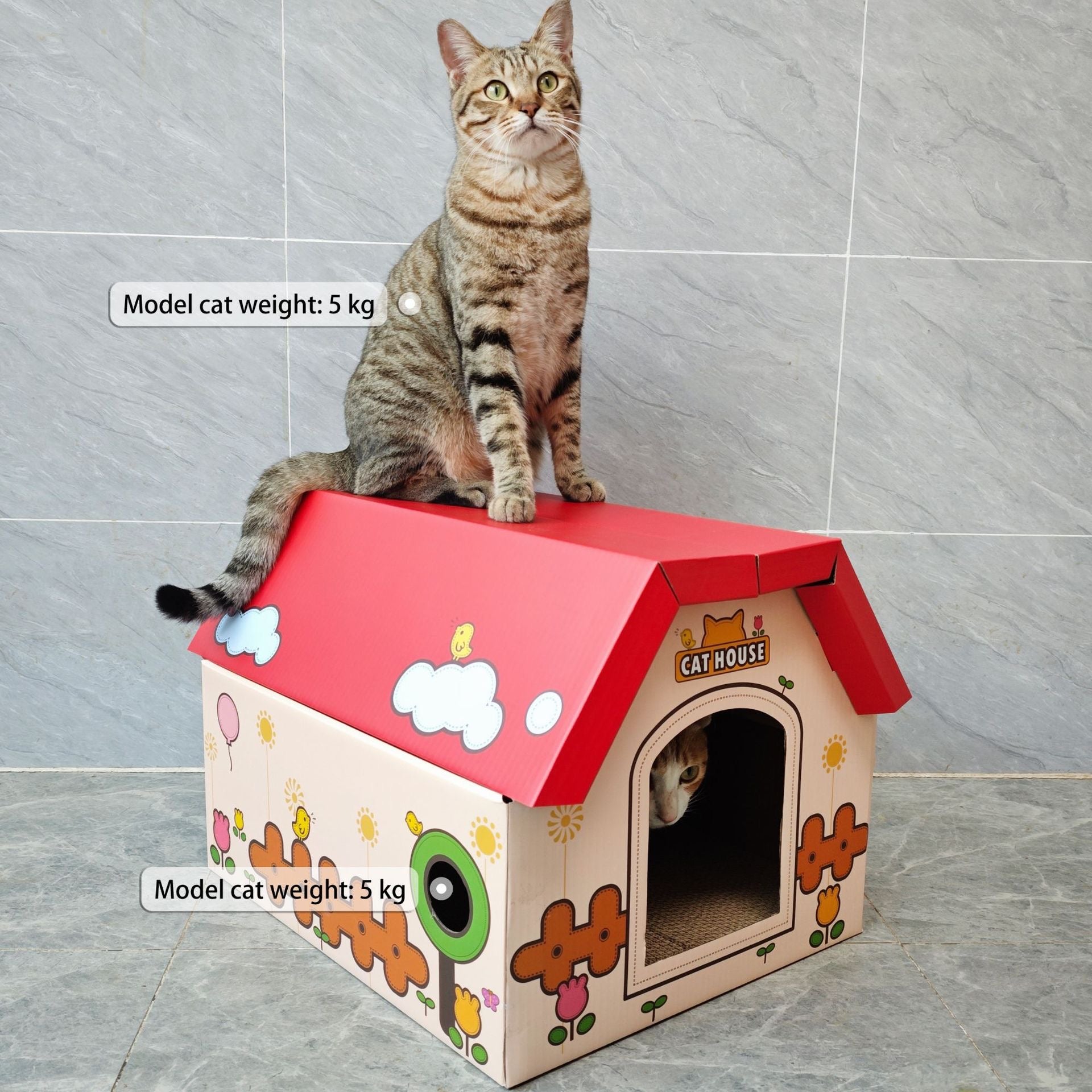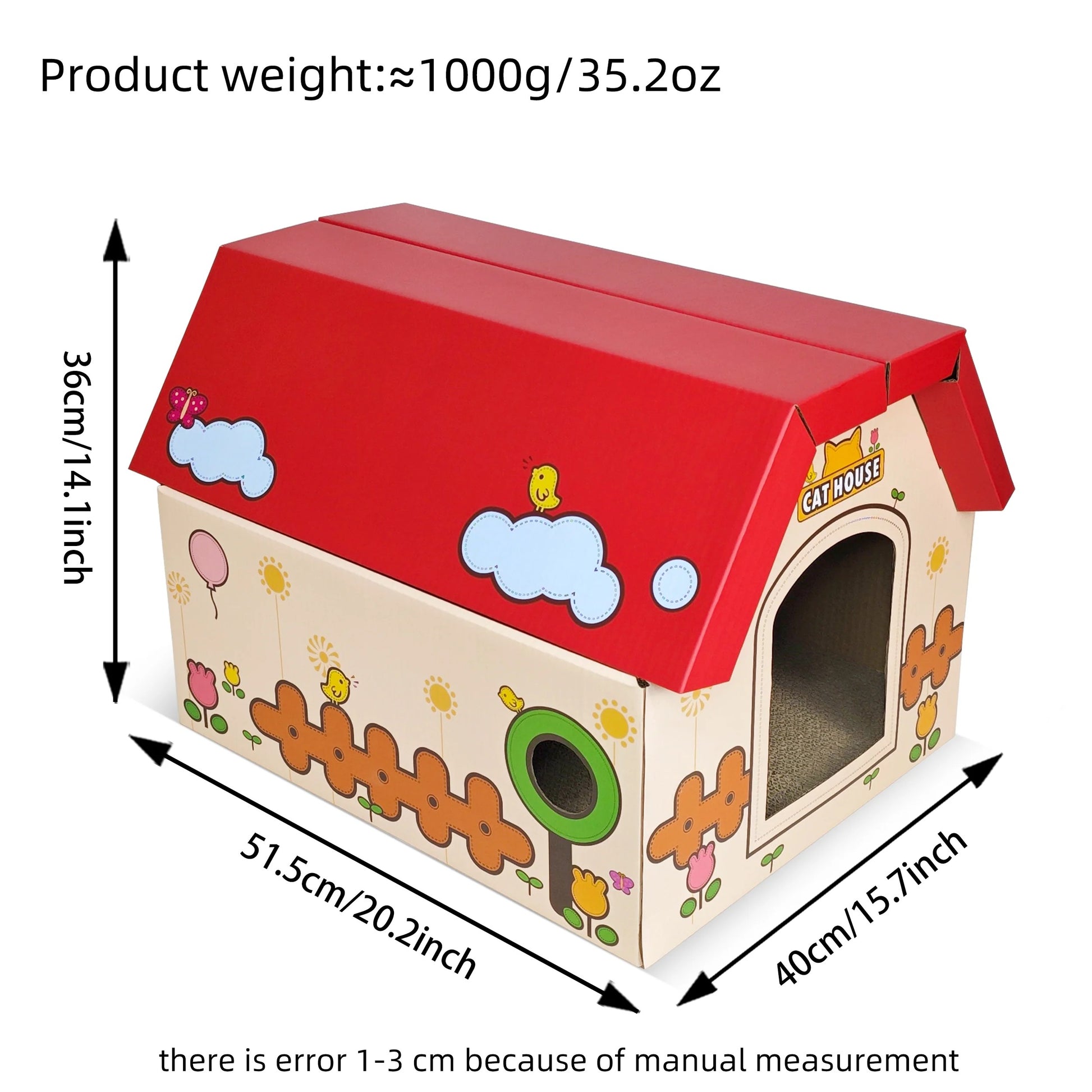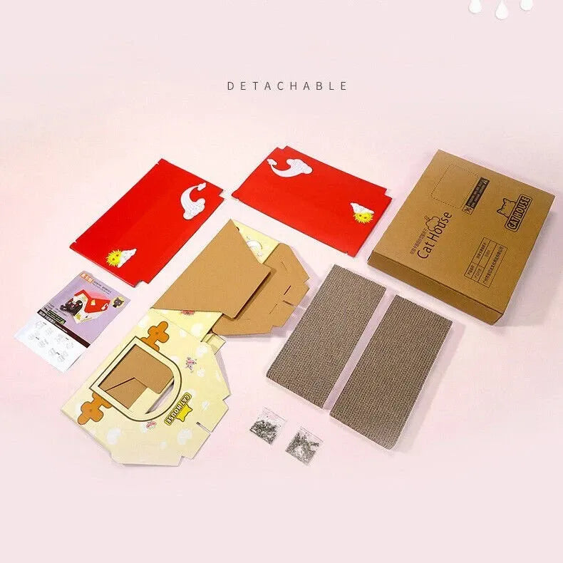 This DIY red game console style cat house is made of 100% recyclable, non-toxic, eco-friendly corrugated cardboard with a 3-layer reinforced core, durable and safe for cats to scratch, rest, and play. Its unique design combines a cat house, bed, scratcher, and playhouse in one, with two detachable scratching boards to keep your cat entertained while protecting your furniture. Lightweight, portable, and easy to assemble or store, this small cat condo fits neatly in any room or corner, providing your cat with a cozy space to relax, explore, and have fun indoors or outdoors.