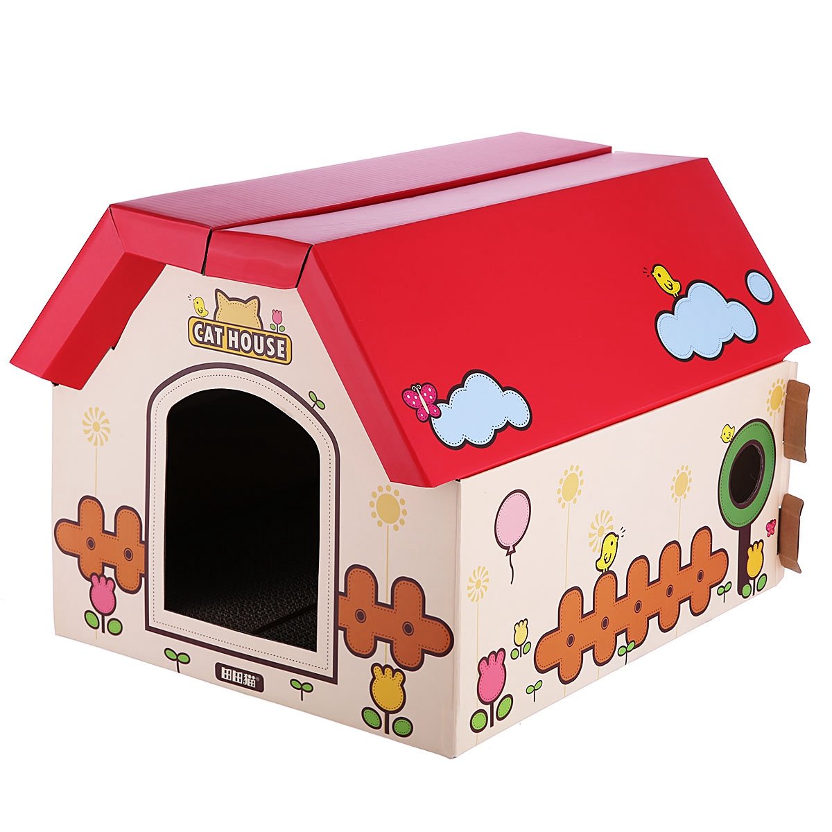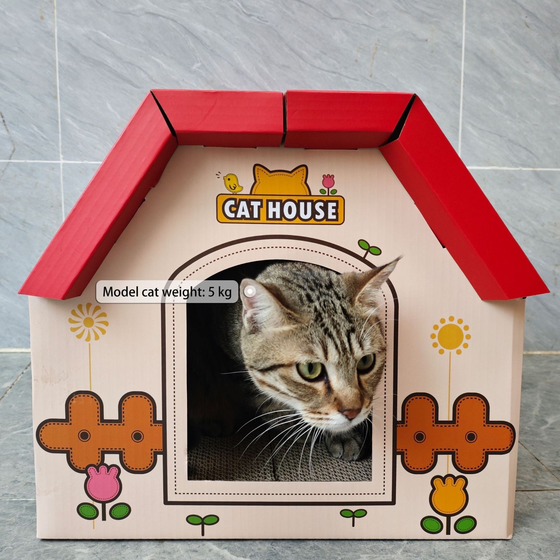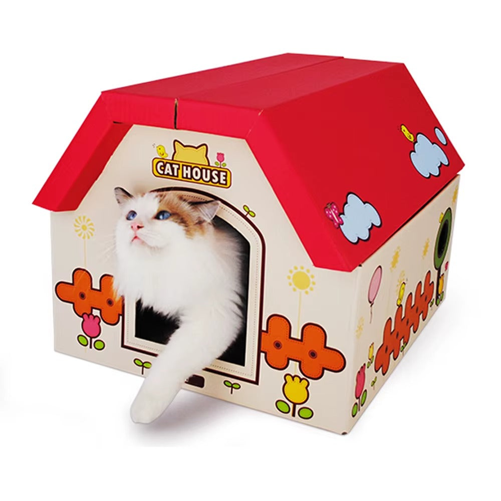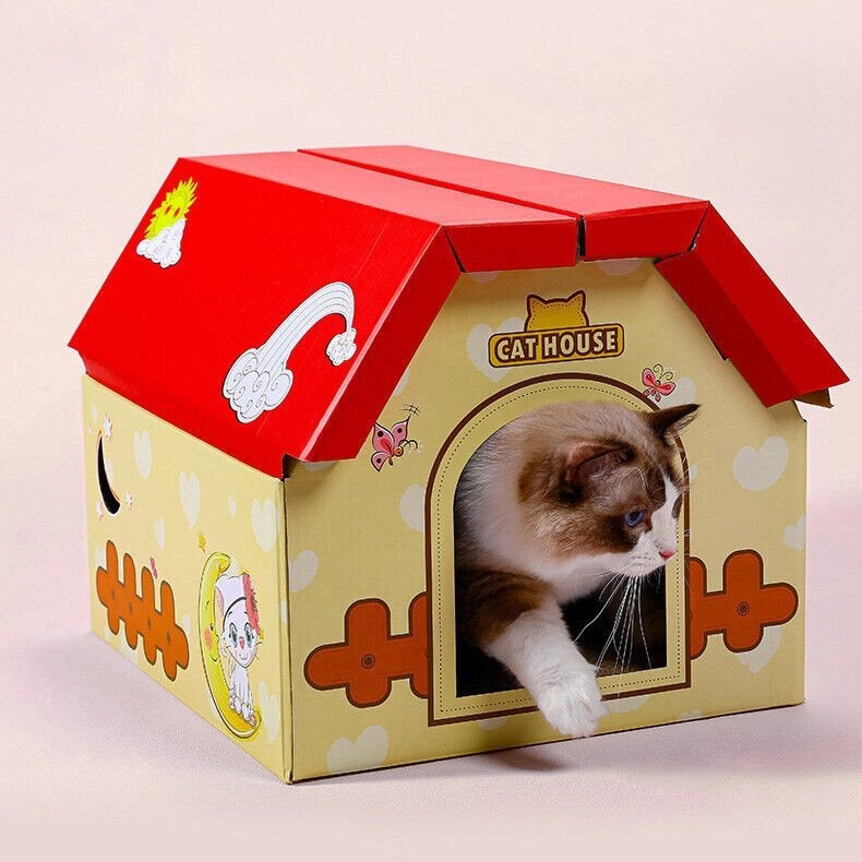 This DIY red game console style cat house is made of 100% recyclable, non-toxic, eco-friendly corrugated cardboard with a 3-layer reinforced core, durable and safe for cats to scratch, rest, and play. Its unique design combines a cat house, bed, scratcher, and playhouse in one, with two detachable scratching boards to keep your cat entertained while protecting your furniture. Lightweight, portable, and easy to assemble or store, this small cat condo fits neatly in any room or corner, providing your cat with a cozy space to relax, explore, and have fun indoors or outdoors.